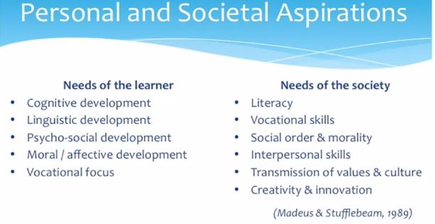 John Dewey "Schools should work to shape the experiences of the young, so that instead of reproducing current habits, better habits shall be formed and thus the future adult society be an improvement on their own." So this is another major reason, used all the time for curriculum planning and development.